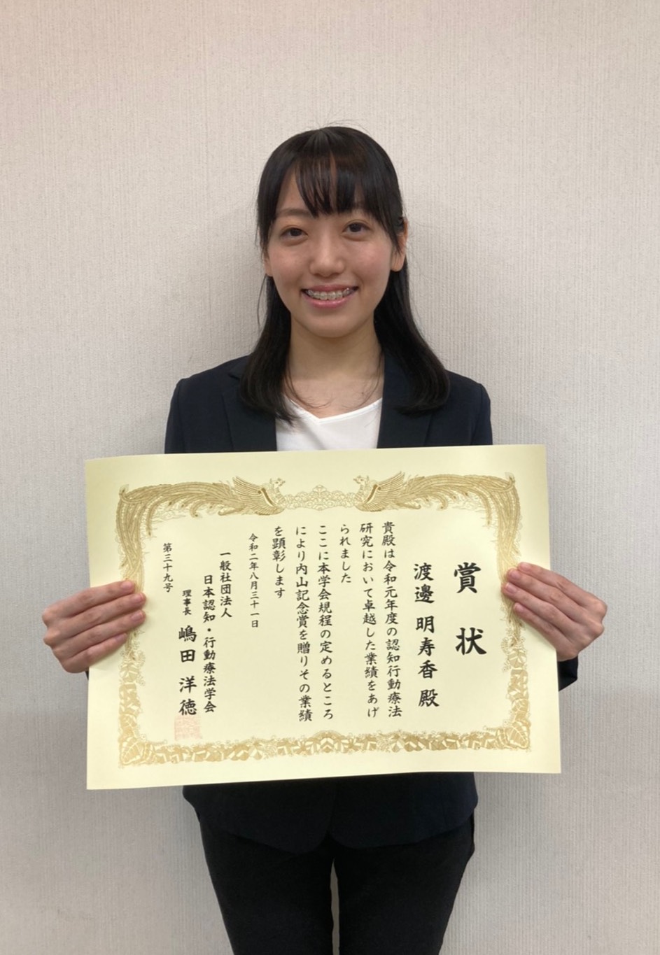 日本認知・行動療法学会第48回大会の会員集会にて,野田航先生に2022年度内山記念賞を授与しました。
